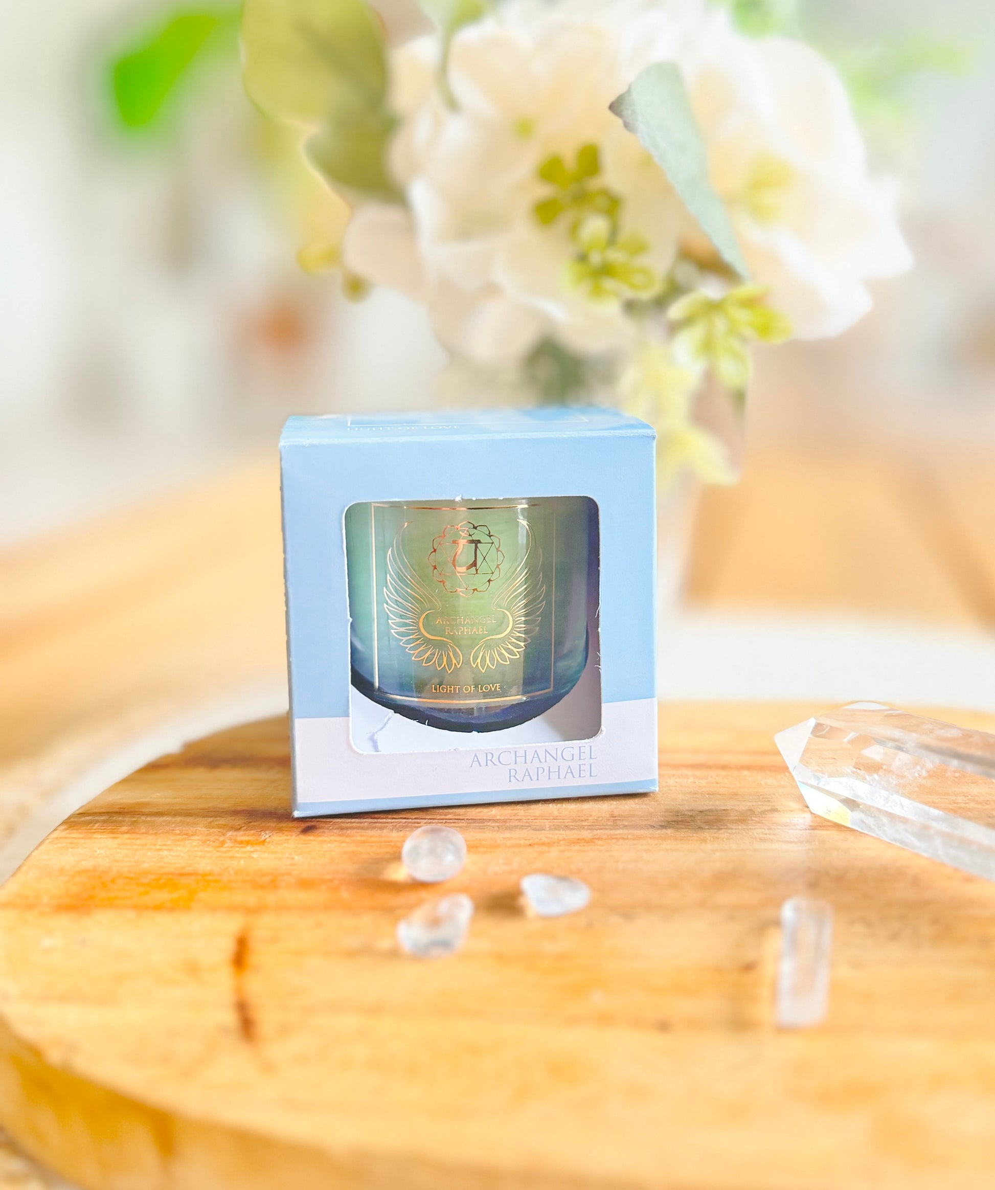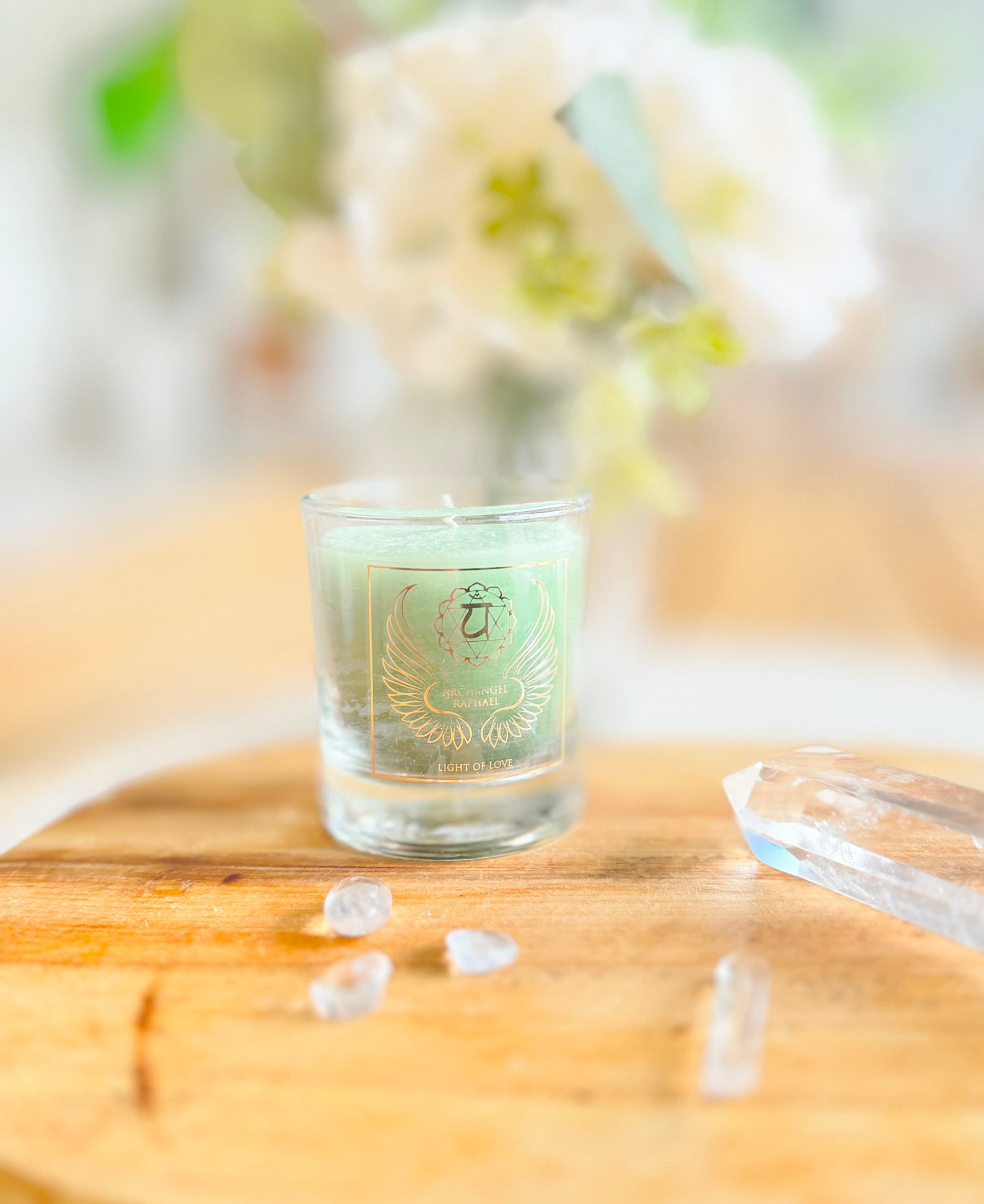 Cette bougie de l’archange Raphaël est relié au 4e Chakra