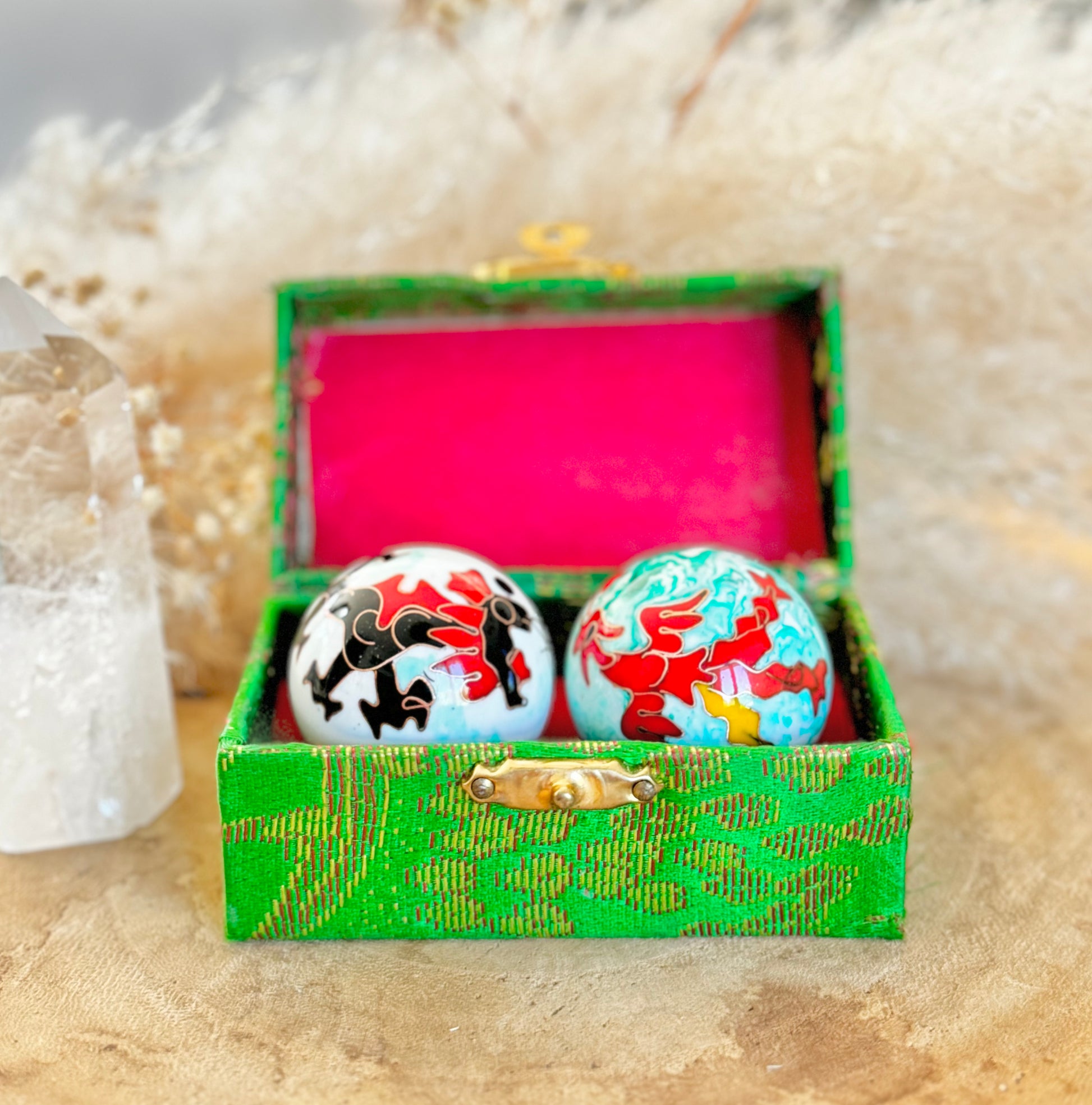 boules Qi Gong sont utilisées en médecine chinoise traditionnelle pour réharmoniser l'ensemble du corps en faisant circuler l'énergie vitale en nous le QI (Chi).