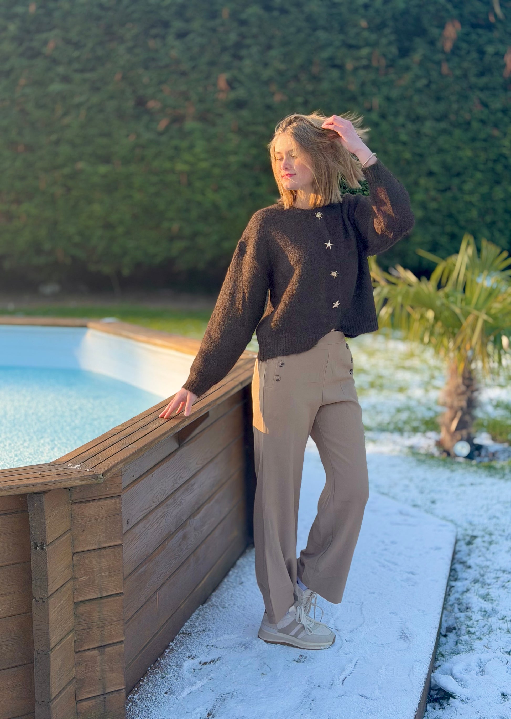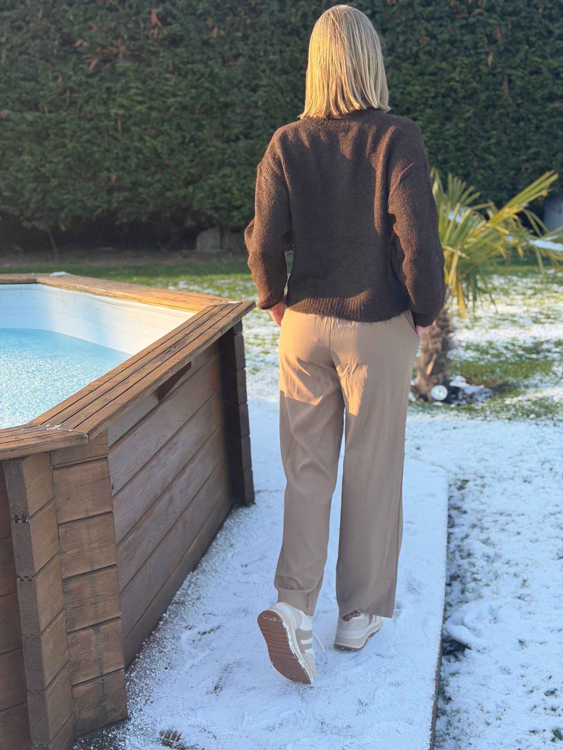 À porter avec un pull doux, une maille fine ou une blouse, le pantalon Milan s’adapte aussi bien aux journées actives qu’aux moments plus habillés. ❤️